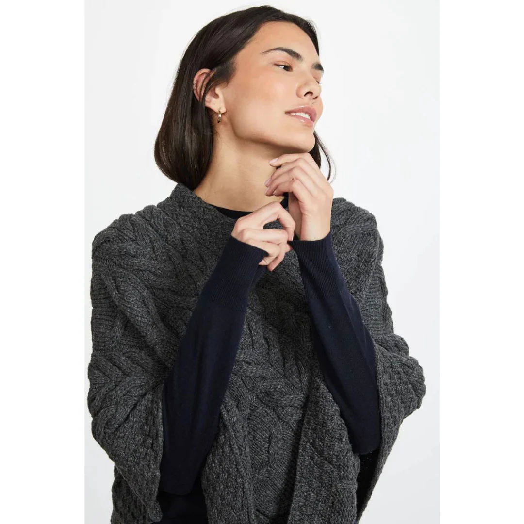 Ladies Aran Cable Knit Triangular Charcoal Poncho