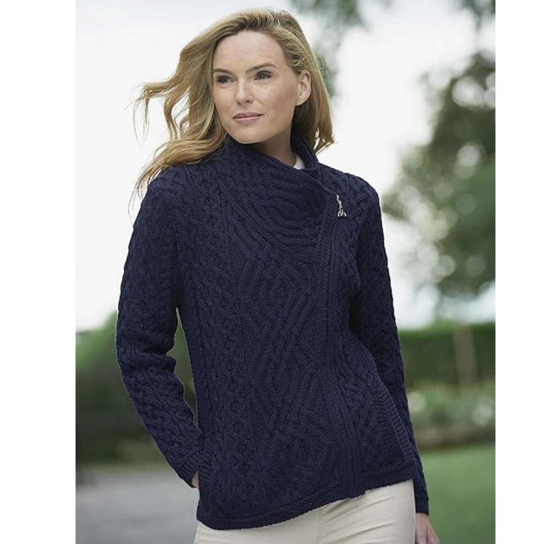 Ladies Aran Knit Trinity Zip Navy Cardigan