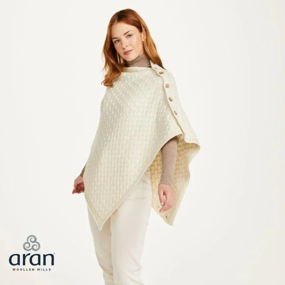 Ladies Aran Super Soft Merino Oatmeal Poncho